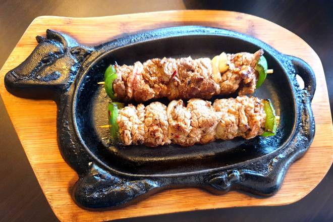 200grams de boeuf mariné, grillées en brochettes Servi sans accompagem